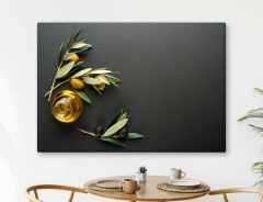 Λάδι και κλαδιά ελιάς σε μαύρο φόντο - Εκτύπωση σε καμβά